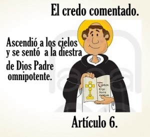 Tenemos en este artículo 6 del credo comentado de santo Tomás de Aquino y traducido por Salvador Abascal, una excelente catequesis dogmática exquisita: Ascendió a los cielos y se sentó a la diestra de Dios Padre omnipotente; verdades que santo Tomás de Aquino explica de una manera concisa; la ascensión hecho que se lleva de manera sublime, de una manera que el razonamiento lo puede entender y que puede alcanzar a percibir la excelsa utilidad de este acontecimiento.