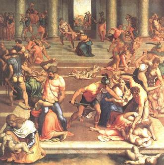 Herodes se enojó muchísimo cuando se dio cuenta de que los Magos lo habían engañado, y fijándose en la fecha que ellos le habían dicho, ordenó matar a todos los niños menores de dos años que había en Belén y sus alrededores.