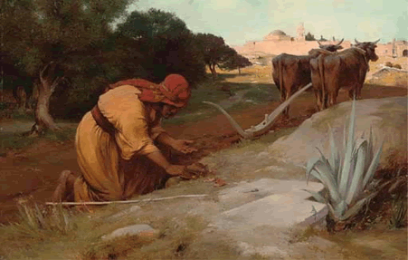 El Reino de los Cielos es como un tesoro escondido en un campo. El hombre que lo descubre, lo vuelve a esconder; su alegría es tal, que va a vender todo lo que tiene y compra ese campo.