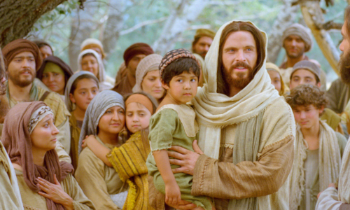 Al verlo, Jesús se enfadó y les dijo: «Dejad que los niños se acerquen a mí: no se lo impidáis; de los que son como ellos es el reino de Dios. Os aseguro que el que no acepte el reino de Dios como un niño, no entrará en él.»