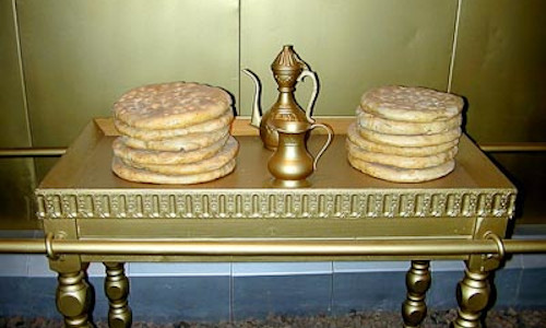 y tomando los panes sagrados, que sólo los sacerdotes podían