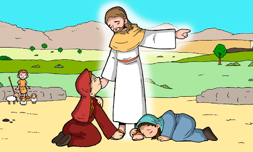 Jesús les salió al encuentro y las saludó. Ellas se le acercaron, le